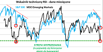 Jak widać, analogia z rokiem 1998 jak na razie (wg stanu na połowę października) utrzymuje się. Rynki wschodzące dynamicznie wychodzą ze stanu wyprzedania (gdzie historycznie opłacało się kupować). Jednocześnie odbija się też (ale mniej dynamicznie) RSI dla rynku amerykańskiego, mimo że wcześniej nie zszedł tak nisko - także tu utrzymane jest podobieństwo z rokiem 1998.