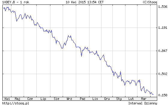 Efekty są namacalne - rentowność obligacji za Odrą systematycznie pogłębia dołki. W przypadku najbardziej obserwowanych przez inwestorów niemieckich papierów 10-letnich dochowość jest o krok od spadku poniżej trudnego niegdyś do wyobrażenia poziomu 0,15%. A teoretycznie rentowność pod wpływem zakupów EBC może spaść jeszcze niżej - narzucony przez bank limit to -0,20%. Do tego pułapu dotarła właśnie natomiast dochodowość niemieckich 4-latek. Ujemna jest też rentowność 8-latek. Niektórzy określają tę sytuację dosadnie - jako bańkę spekulacyjną (choć od klasycznych baniek ten stan rzeczy odróżnia się tym, że źródłem popytu nie są owładnięci przez żądzę zysku prywatni inwestorzy lecz działający z zamysłem bank centralny).
