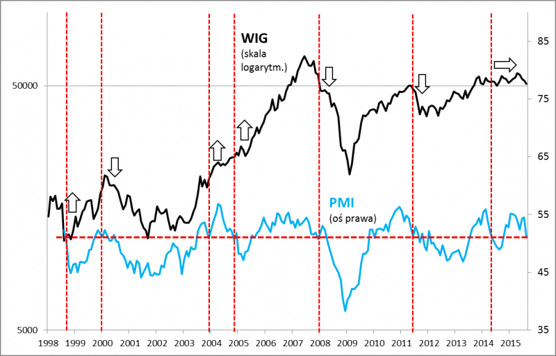 Problem polega raczej na tym, że nagłej intensyfikacji tematu chińskiego towarzyszył relatywnie słaby odczyt wskaźnika PMI pokazującego aktywność w polskim przemyśle. Sierpniowy spadek PMI o 3,4 pkt., to jeden z największych miesięcznych spadków w całej jego historii (!). Samo w sobie nie jest to jeszcze większym powodem do zmartwienia dla inwestorów giełdowych. Wręcz przeciwnie, ponad 3-punktowe zniżki PMI w przeszłości były raczej dobrymi okazjami do kupowania, niż sprzedawania akcji (XI 2008, I 2005, X 1998).