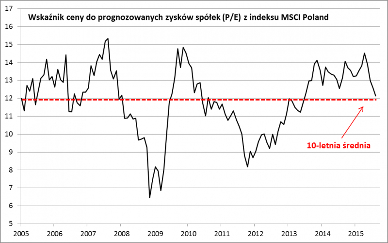 Rys. 2. Wyceny akcji powróciły do historycznej normy