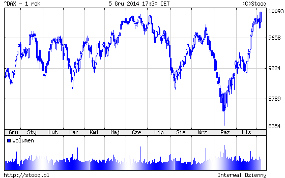 W sierpniu i październiku niemieccy inwestorzy przeżywali trudne chwile. Wyglądało na to, że DAX przełamał długoterminowy trend wzrostowy i że na kolejne rekordy trzeba będzie dłużej poczekać. Niemcom, podobnie jak i szerokiemu rynkowi u nas, we znaki dał się konflikt ukraińsko-rosyjski.
