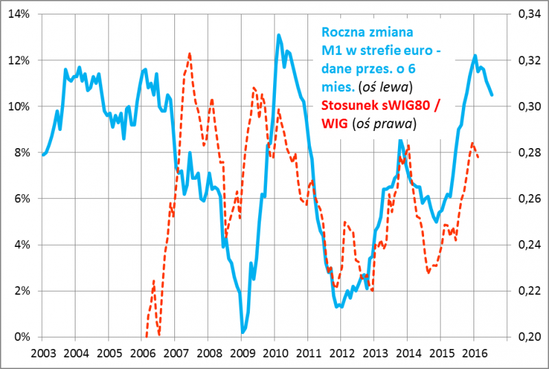 Mniej więcej od 8-9 lat podaż pieniądza w kluczowej dla polskiej gospodarki strefie euro z wyprzedzeniem zapowiada okresy relatywnej siły/słabości małych spółek.