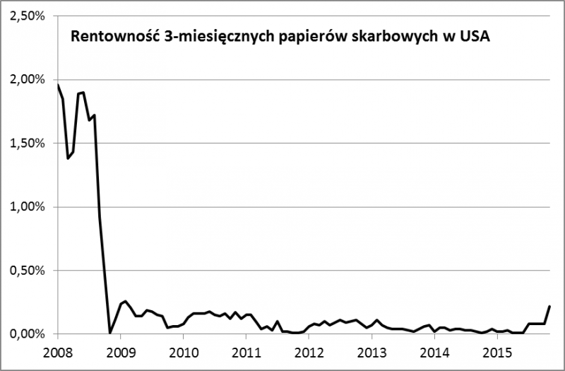 Ostatnie wypowiedzi Mario Draghiego mocno rozbudziły apetyty na ultra "gołębie" decyzje Europejskiego Banku Centralnego na dzisiejszym posiedzeniu. Tymczasem w USA rynek pieniężny już dyskontuje prawdopodobną podwyżkę stóp procentowych. Rentowności na krótkim końcu krzywej dochodowości, czyli mówiąc prościej - rentowności krótkoterminowych (1-3 miesięcznych) papierów skarbowych wyraźnie "oderwały się" od dna, na jakim tkwiły od kilku lat.