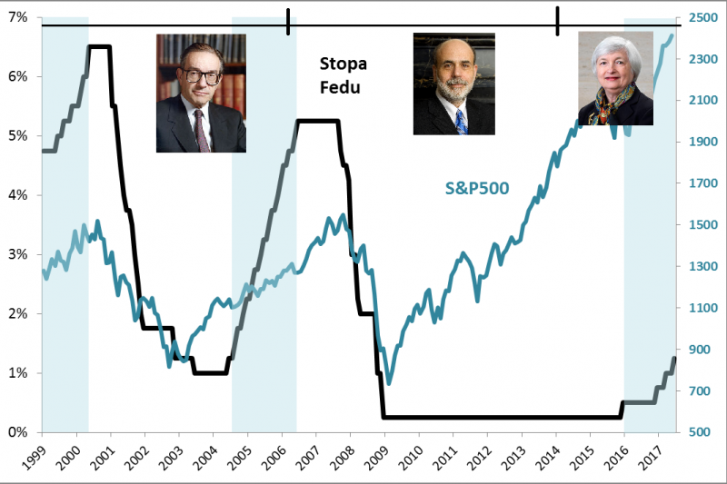 Na gruncie giełdowym to opóźnienie prowadzi do zaskakującej reguły. Dwie ostatnie wielkie bessy (2000-2002, 2008) miały miejsce nie wtedy, gdy Fed podnosił stopy, lecz gdy … je obniżał. I tutaj wytłumaczenie jest proste – obniżki kosztów pieniądza były wyrazem obaw przed rozkręcającym się spowolnieniem gospodarczym, a takie warunki przecież nie są korzystne dla rynków akcji. Oczywiście obniżki nie mogły automatycznie zatrzymać tych negatywnych procesów ze względu na wspomniane opóźnienie (efekty obniżek były widoczne dopiero później, kiedy rynki akcji weszły w okres hossy).