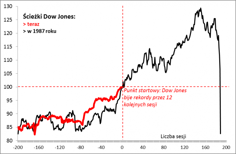 Bliższa analiza pokazuje jednak, że mimo złowieszczego hasła "rok 1987" do czasu pojawienia się owego krachu Dow Jones zdążył zyskać jeszcze aż 30%! Gdyby ta analogia miała obowiązywać, to przed nadejściem rynkowej katastrofy czekałaby nas jeszcze ostatnia fala euforycznych zakupów.