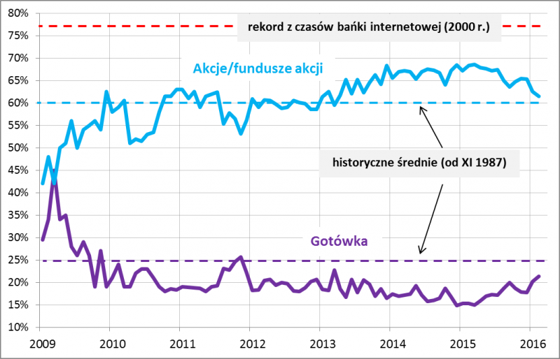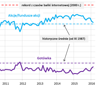 Redukcja nadwyżki optymizmu wśród amerykańskich inwestorów to z kontrariańskiego punktu widzenia dobra wiadomość. Z drugiej strony - najlepsze okazje do kupowania akcji zdarzały się w przeszłości, gdy proporcja agresywnych inwestycji była wyraźnie poniżej długoterminowej średniej. Z taką sytuacją jeszcze nie mamy do czynienia.
