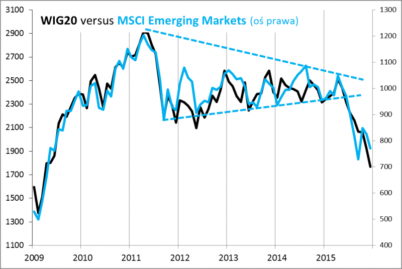 Rys. 4. Słabe rynki wschodzące = słaby WIG20