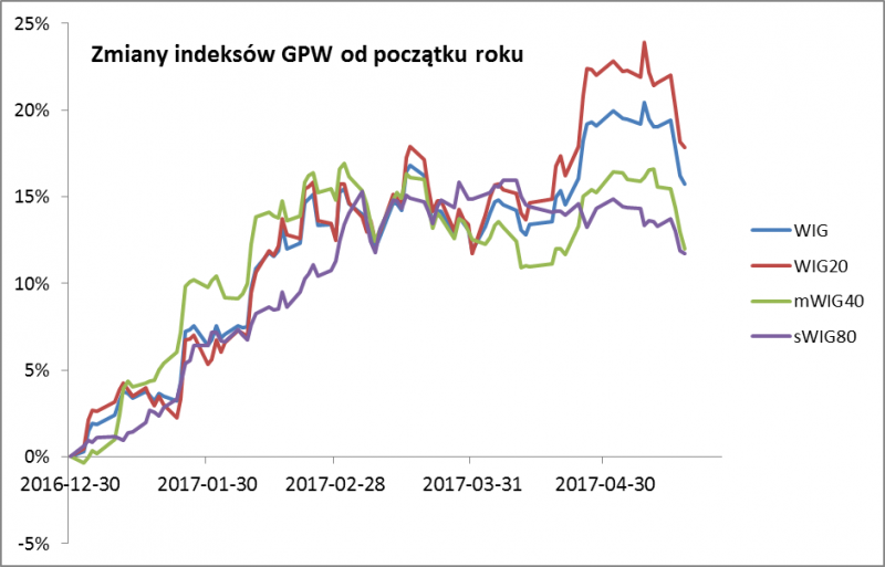 Indeksy GPW solidarnie weszły w fazę korekty spadkowej po ostatnich silnych zwyżkach.