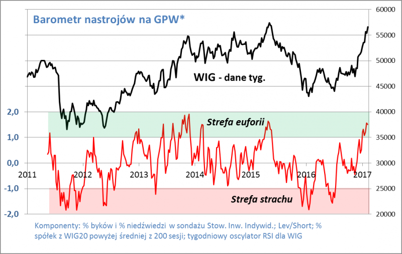 ... indeksy GPW z determinacją pną się w górę (czyżby na rynek zaczęły płynąć większe pieniądze?). WIG niczym zaczarowany zmierza ku szczytowi z wiosny 2015 r. (57.379 pkt. w cenach zamknięcia). Gdyby go pokonał, ustanowiłby nowe maksimum w ramach hossy trwającej (z dużymi przerwami) od 2009 roku. A tym samym znalazłby się na poziomach najwyższych od ponad dziewięciu lat.