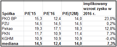 implikowany wzrost zysku = (P/E'15) / (P/E'16) - 1.