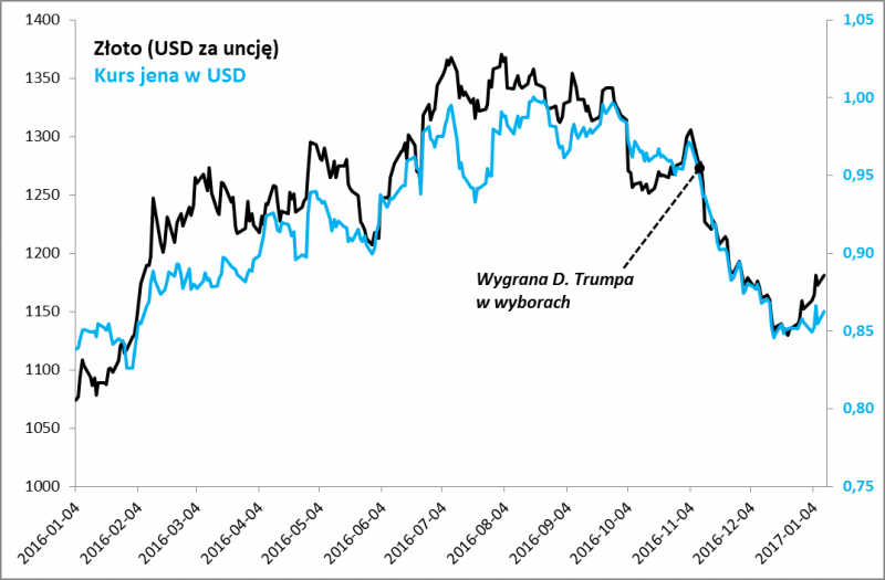 Dziś aktualizacja rozważań na temat rynku złota, którego notowania w ostatnich tygodniach przerwały złą passę i powróciły do poziomów z końca listopada ub.r. Bezpośrednio pomogło w tym przede wszystkim zahamowanie silnej aprecjacji dolara do większości walut, w tym np. jena japońskiego (kurs JPY/USD cechuje się tradycyjnie silną korelacją z ceną złota).