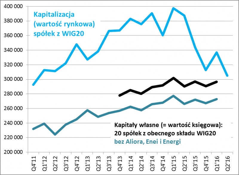 Wygląda więc na to, że choć spółki z WIG20 wydają się nadal drogie lub bardzo drogie w zestawieniu z księgowymi zyskami, to w porównaniu z przepływami pieniężnymi czy kapitałami własnymi wnioski są zgoła odmienne. Oczywiście ideałem byłoby, gdyby wszystkie miary wartości przemawiały za tym, że blue chips są tanie. Przy takim regresie zysków będzie jednak o to trudno.