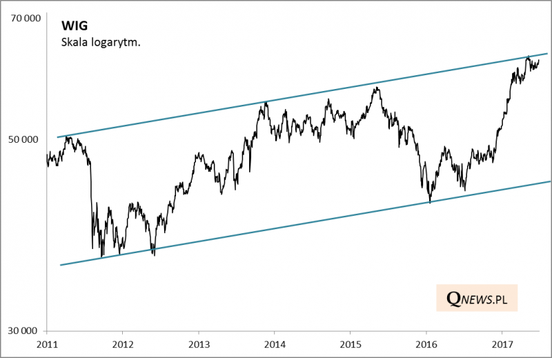 Półmetek roku za pasem, czas więc odświeżyć naszą diagnozę odnośnie sytuacji na wykresie WIG-u. Od początku maja (czyli już niemal dwa miesiące!) indeks przeżywa łagodną korektę. Bardzo istotne jest to, w jakim punkcie doszło do tej zadyszki - po zderzeniu z linią stanowiącą górne ograniczenie tzw. kanału, w jakim WIG podąża od 2011 r. Ten kanał przypomina jak rozchwiana (i zniechęcająca dla wielu) była w tych latach koniunktura na GPW - WIG poruszał się "od bandy do bandy". Teraz jest szansa, by to wreszcie zmienić.