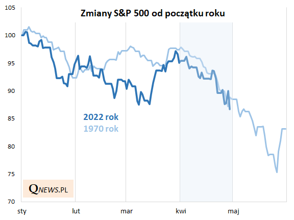 W przypadku rynków akcji kwiecień ma to do siebie, że należy do … najlepszych miesięcy – przynajmniej taki obraz kreują prowadzone przez nas statystyki miesięczne dotyczące Wall Street. Niestety w tym roku korzysta sezonowość zupełnie zawiodła nadzieje na poprawę koniunktury po słabym I kwartale. Poszukiwania równie słabego kwietnia zaprowadziły nas (w chwili pisania tego artykułu, czyli po sesji 27 IV) aż do … 1970 roku. To dość wymowna data, bo rozpoczynające się wtedy lata 70. XX wieku zasłynąć miały przecież z uporczywej stagflacji – oby tym razem sytuacja w gospodarkach nie rozwinęła się w tak niekorzystnym kierunku.