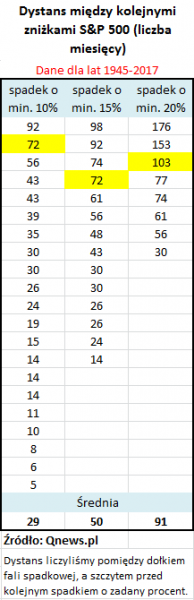 Rys. 3. Ile miesięcy mijało między zniżkami S&P 500 o co najmniej 10 proc.?