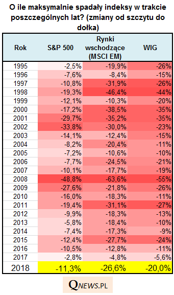 2017 = brak korekt na globalnych rynkach. 2018 = powrót zmienności