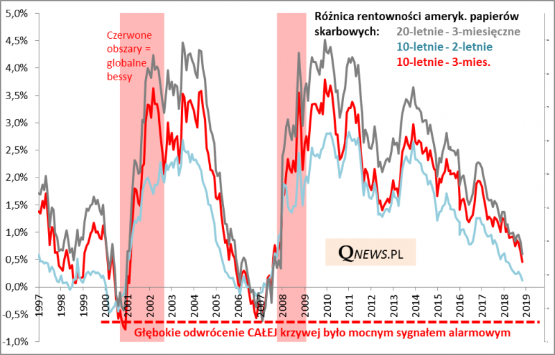 W ostatnich dniach uwaga skoncentrowała się na fakcie, że rentowność obligacji 5-letnich spadła poniżej rentowności papierów 2- i 3-letnich. Jest to tzw. częściowe odwrócenie krzywej. Bardziej "niedźwiedzio" nastawieni komentatorzy przystąpili czym prędzej do wieszczenia rychłej globalnej recesji, skoro historycznie odwrócenie krzywej było właśnie takim sygnałem.