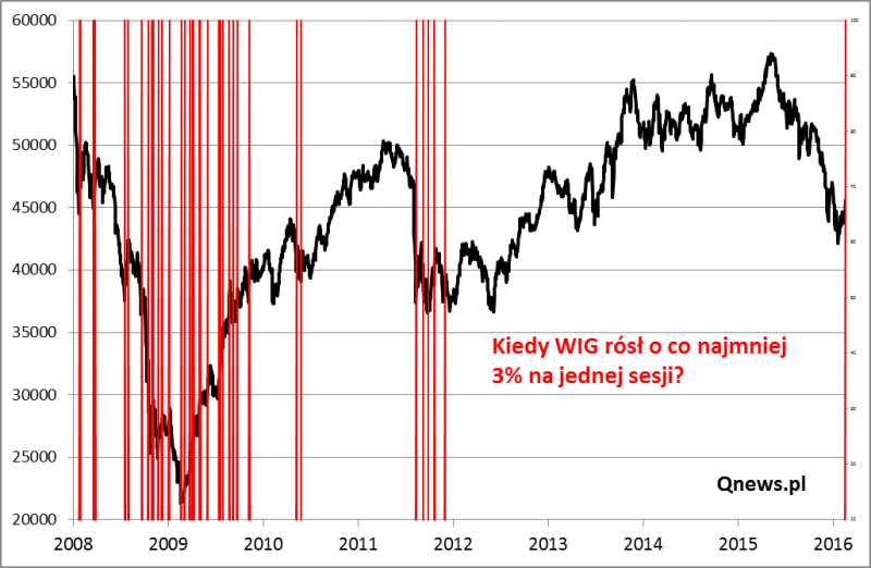 Środowa zwyżka WIG o ok. 3% to zdarzenie nietypowe. Nie tylko w porównaniu z ostatnim okresem uporczywej słabości GPW, ale też na tle ostatnich czterech lat. Poprzednio taki jednodniowy skok odnotowaliśmy jeszcze w listopadzie 2011 roku.