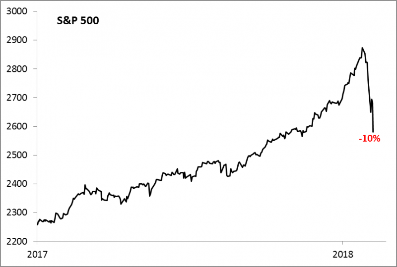 Amerykański S&P 500 nie tylko wykonał "normę", jeśli chodzi o wyczekiwany spadek o 5% (w styczniu pojawił się rekord, jeśli chodzi o długość zwyżki bez 5-proc. korekty), ale nawet wykazał się inicjatywą i poszedł jeszcze krok dalej - w czwartek znalazł się ponad 10% poniżej szczytu.