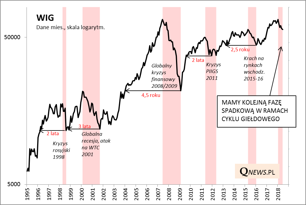 Rys. 1. Nie ma już wątpliwości, że mamy do czynienia z kolejną cykliczną fazą spadków na GPW