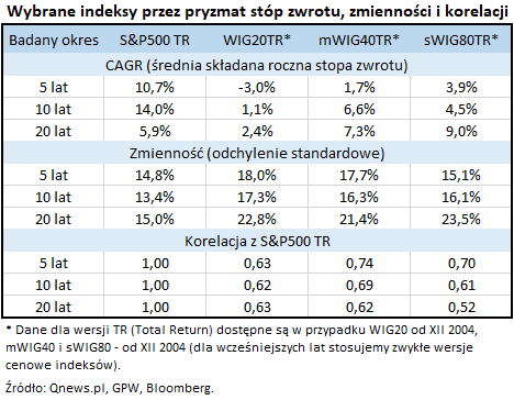 W ostatnich kilku miesiącach akcje polskich małych spółek okazują się mocniejsze niż amerykański S&P500. A jak to wygląda na dłuższą metę? Przyglądamy się historycznym stopom zwrotu, zmienności i korelacjom.