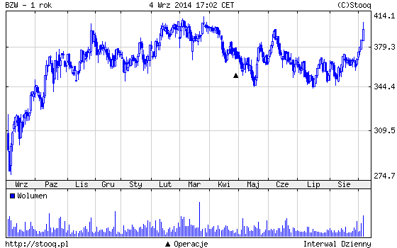 Podobny „prezent” na dzisiejszej sesji otrzymali akcjonariusze Energii, BZ WBK, Aliora czy CCC. Ich kursy zwyżkowały po kilka procent po informacji o uwzględnieniu w indeksie FTSE od 19 IX. Przykładowo notowania BZ WBK zbliżyły się do historycznego szczytu.
