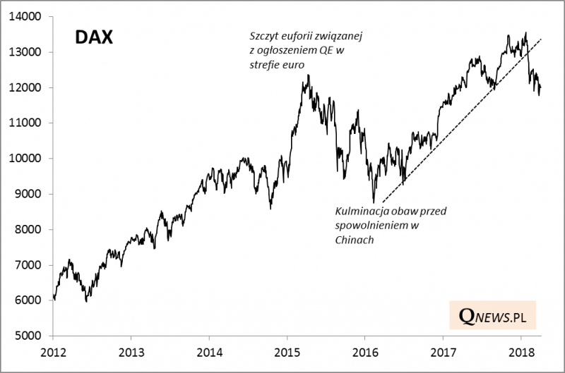 Niemieckim akcjom zaszkodziły nie tylko globalne turbulencje na rynkach, ale też specyficzne czynniki, takie jak niepewność polityczna po wyborach czy też groźba wytoczenia ciężkich dział w wojnach celnych przez amerykańskiego prezydenta Trumpa. USA mają znaczny deficyt w handlu z Niemcami.