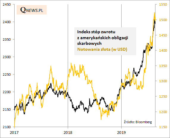 Bieżący rok przynosi pokaz siły tzw. aktywów defensywnych. Byliśmy świadkami silnego spadku rentowności obligacji na rynkach bazowych, powiązanego z adekwatnym wzrostem ich cen. W tym samym czasie wystrzeliły też notowania złota, często zaliczanego do aktywów defensywnych.