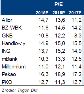 Warto tu zwrócić uwagę, że banki ze względu na swą wagę w głównych indeksach (35% w WIG20 i 28% w WIG) współdecydowały także o ich tegorocznej słabości (WIG -9% od początku roku). Jeśli tezy analityków Trigon i BZ WBK są trafne, to będzie o jedną "kulę u nogi" mniej (problematyczna pozostaje jeszcze sytuacja energetyki ze względu na przymusowy mariaż z nierentownymi kopalniami, oraz KGHM ze względu na surowcową bessę).