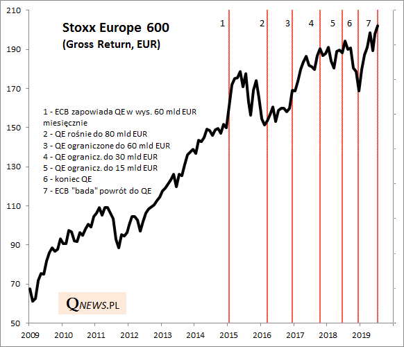 Potem ECB długo zwlekał z zakończeniem QE, mimo sprzyjających warunków makroekonomicznych. Kiedy wreszcie zapowiedział koniec "luzowania ilościowego" (jesień 2018), stało się to akurat wtedy, gdy gospodarki znalazły się w niekorzystnej fazie cyklu Kitchina.