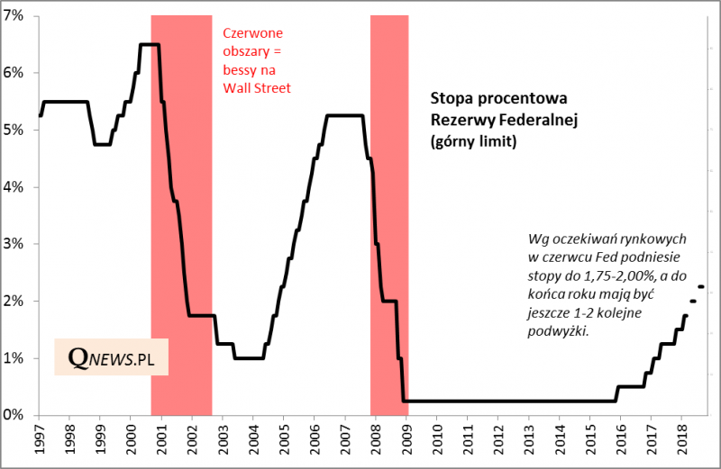 Póki co pocieszający jest jeden fakt - historycznie bessy na giełdach rozpoczynały się, gdy Fed ... przestawał podnosić stopy (a w przypadku z 2007 r. nawet zaczął je ... obniżać). Nasza teoria jest prosta - historycznie podwyżki stóp były tylko wtedy, gdy Fed czuł się komfortowo z sytuacją gospodarczą. Oznaki jej znacznego pogarszania się skłaniały bank do zaprzestania podwyżek, ale na ogół dla giełd było już wtedy za późno.