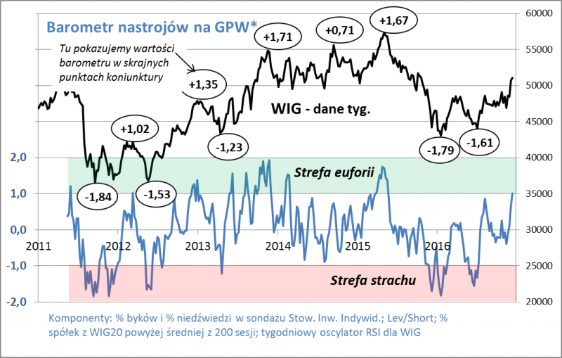 Obecna sytuacja jest już jednak zgoła odmienna. Barometr w końcu ubiegłego tygodnia znalazł się na granicy... "strefy euforii". Poprzednio był w niej jeszcze wiosną 2015 roku.