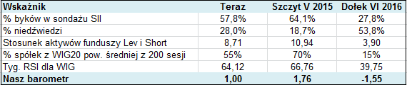 Jakiś czas temu pokusiliśmy się o próbę stworzenia syntetycznego barometru nastrojów na warszawskiej giełdzie, łączącego w sobie kilka (a konkretnie pięć) sprawdzonych wskaźników. Czas na aktualizację, bo nasz barometr przebył ostatnio długą drogę.