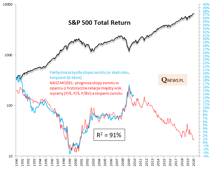 Ale teraz prognoza nie brzmi już tak jednoznacznie: "jest niemal pewne, że akcje na przestrzeni najbliższych dekad wygrają z długoterminowymi instrumentami dłużnymi o stałym oprocentowaniu". Jak widać tym razem mowa jest o "dekadach", a nie o najbliższej dekadzie. Notabene z naszego własnego modelu wynikałoby, że stopy zwrotu z drogich amerykańskich akcji w najbliższym 10-leciu mogą wyglądać słabo (ten sam model na jesieni 2008 roku był spójny z entuzjastycznymi zachętami Buffetta).