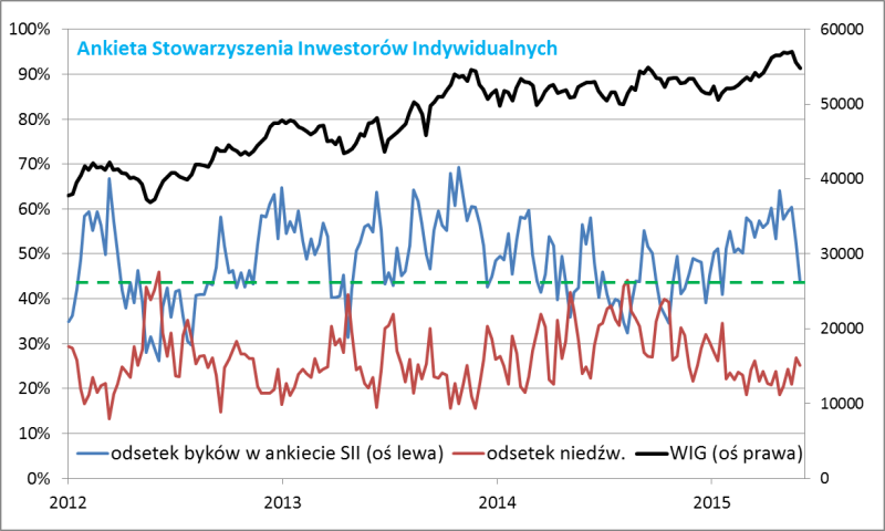 Wysoki poziom optymizmu w ankiecie Stowarzyszenia Inwestorów Indywidualnych utrzymujący się od końca kwietnia i przez większość maja był dla nas jednym z powodów do zastanowienia się nad scenariuszem korekty wcześniejszej fali wzrostowej na GPW.
