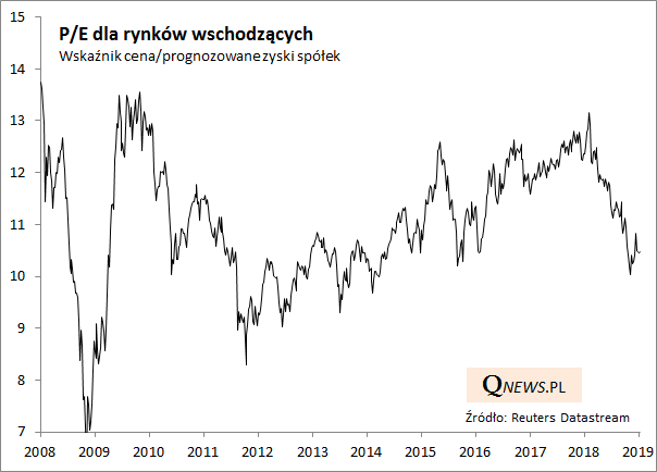 Na znacznie atrakcyjniejszych niż przed rokiem, a jednocześnie dość przeciętnych z długoterminowego punktu widzenia są też wyceny akcji na rynkach wschodzących...