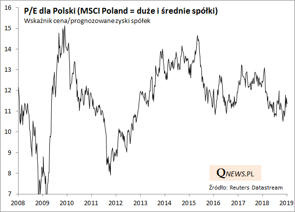 ... i na polskiej giełdzie (przynajmniej jeśli chodzi o duże i średnie spółki, bo wyceny wśród małych spółek bywają w niektórych przypadkach o wiele niższe).