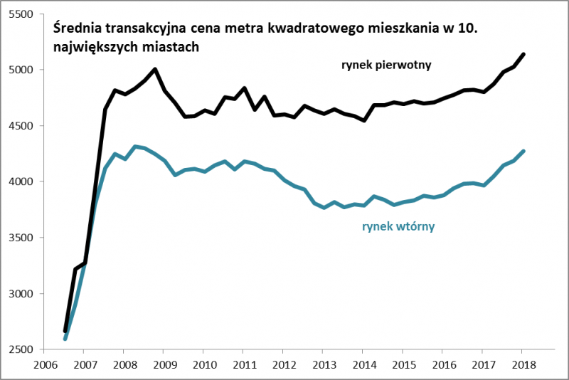 Na początku tego roku WIG atakował rekord wszech czasów z 2007 roku. Opublikowany w czerwcu raport NBP pokazuje, że dokładnie to samo działo się w I kwartale na rynku mieszkań w Polsce. Z tą różnicą, że w „mieszkaniówce” rekord został ustanowiony nie w 2007 roku, lecz nieco później – w zależności od przyjętego indeksu II-IV kwartale 2008. Z danych gromadzonych przez NBP wynika, że średnie ceny transakcyjne mieszkań w dziesięciu największych miastach w przypadku rynku pierwotnego już pokonały historyczny rekord (5137 zł za metr kwadratowy wobec 5007 zł w IV kw. 2008), zaś w przypadku rynku wtórnego są o krok od rekordu (4273 zł wobec 4316 zł w II kw. 2008).