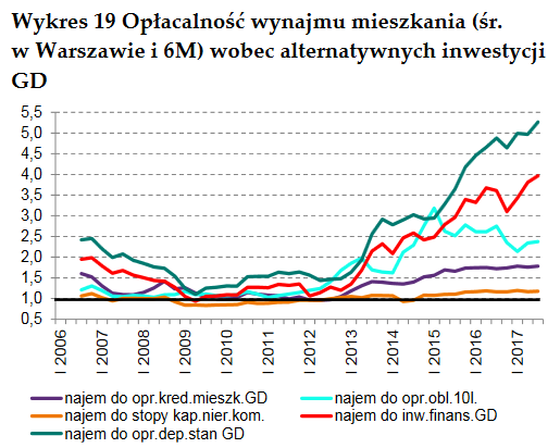 Bez wątpienia jednym z czynników wspierających hossę w nieruchomościach są - obok ożywienia gospodarczego i najlepszych od lat nastrojów konsumentów - rekordowo niskie stopy procentowe, zarówno w strefie euro, jak i w Polsce. Zdają się to potwierdzać wyliczenia NBP. Najem mieszkań w największych miastach jest rekordowo opłacalny w porównaniu z niskim oprocentowaniem lokat bankowych.