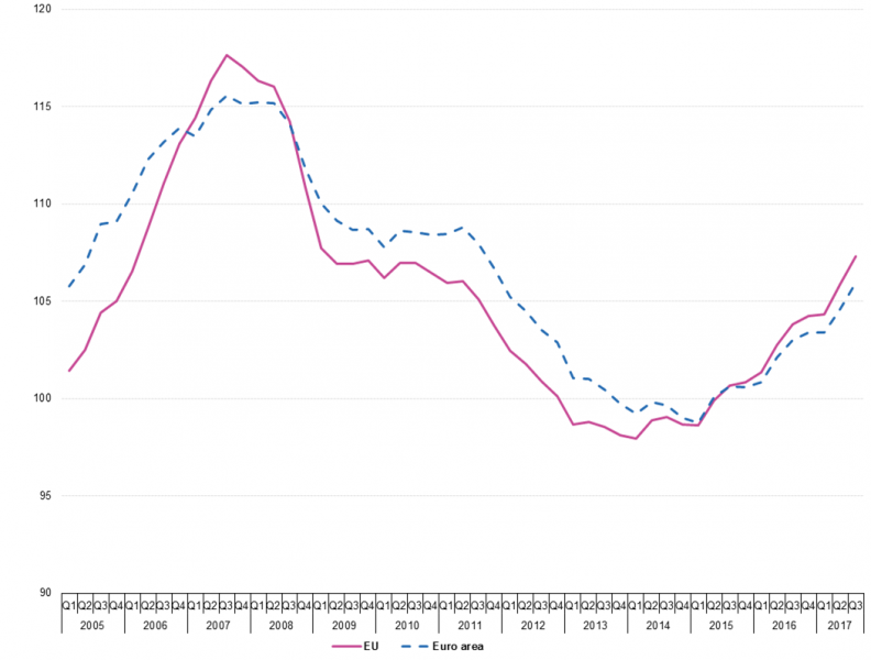 Indeks cen nieruchomości mieszkaniowych (House Price Index, HPI) w Polsce urósł w III kwartale 2017 r. o 1%, do poziomu najwyższego od połowy 2011 roku - wynika z analizy najświeższych danych Eurostatu.
