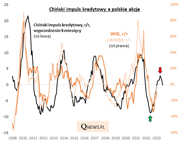 Korelacji między chińskim impulsem kredytowym a wahaniami cen akcji na GPW sporo co prawda brakuje do perfekcji - co każe traktować ten czynnik jako tylko jeden z wielu - ale jego właściwości wyprzedzające są bez wątpienia godne uwagi. Do ewentualnego wiosennego punktu przegięcia czeka nas jeszcze parę kolejnych odczytów impulsu, co powinno wraz z upływem czasu w większym stopniu rozjaśnić sytuację.