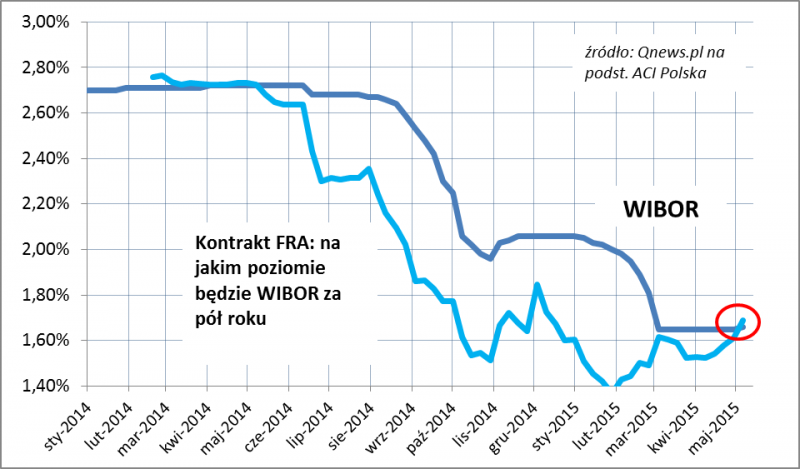 Do takiej samej konkluzji prowadzi obserwacja trendów na rynku kontraktów terminowych na stawkę WIBOR (czyli oprocentowanie pożyczek na rynku międzybankowym, od którego zależne są koszty wielu kredytów bankowych). Po raz pierwszy od roku notowania kontraktów FRA znalazły się powyżej bieżącego poziomu WIBOR-u (do tej pory były ciągle poniżej, co sugerowało, że inwestorzy oczekują spadku oprocentowania). Na razie na szczęście ta nadwyżka jest symboliczna i wygląda na to, że kredytobiorcy będą się jeszcze co najmniej do późnej jesieni cieszyć z rekordowo niskich kosztów pieniądza.