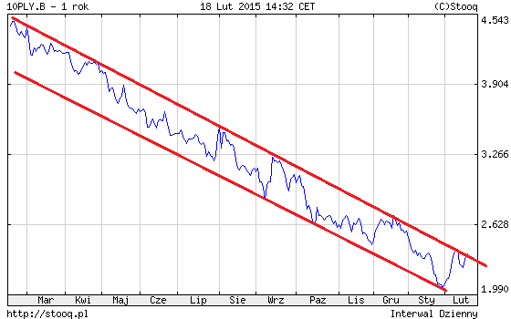 Rentowność obligacji 10-letnich testuje linię trendu spadkowego