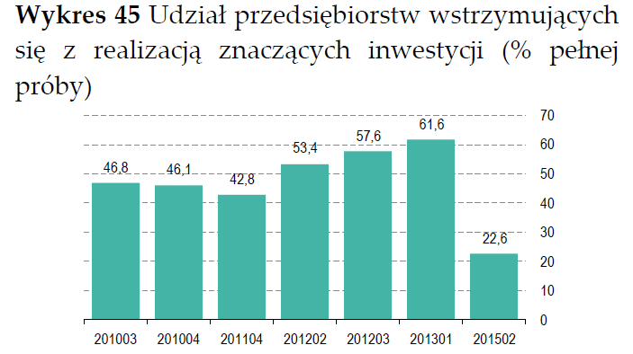 Jak wynika z ankiety wśród firm, przełamany został niekorzystny trend - odsetek podmiotów odkładających duże inwestycje jest wyraźnie niższy niż w poprzednich latach. Czy to zapowiedź szybszego wzrostu inwestycji w gospodarce w kolejnych kwartałach, a tym samym szybszego wzrostu ekonomicznego?