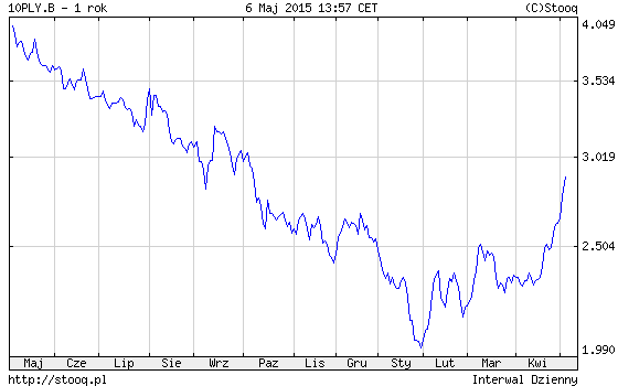 Będąca barometrem koniunktury na tym rynku rentowność papierów 10-letnich w ciągu trzech miesięcy została wywindowana z ok. 2,0% do prawie 2,9% - to poziom najwyższy od siedmiu miesięcy.