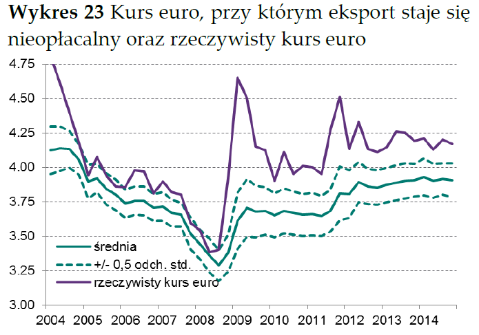A co jeśli chodzi o gospodarkę? Tutaj wpływ jest dwutorowy. Z jednej strony mocniejszy złoty to teoretycznie gorsze wyniki eksportu. Zmniejsza się dystans dzielący kurs EUR/PLN od poziomu deklarowanego przez polskich eksporterów jako średni poziom opłacalności. Według styczniowego raportu NBP przedsiębiorcy deklarowali ok. 3,9 zł jako taką granicę. Pocieszające jest jednak to, że z tych samych badań wynika, że przed ostatnim umocnieniem PLN udział nieopłacalnego eksportu w przychodach ze sprzedaży zagranicznej utrzymywał się na historycznych minimach rzędu 2%. To pozostawia pewien margines bezpieczeństwa.