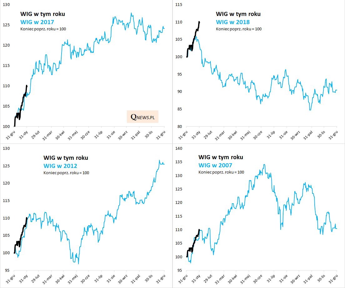 Pozytywne jest to, że – z pominięciem z kolei wyjątkowo słabego 2018 roku – w pozostałych przypadkach tak udany styczeń zapowiadał, mimo ewentualnych turbulencji po drodze – nowe maksima WIG-u w dalszej części roku.