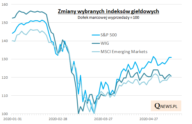 Od kiedy tylko indeksy giełdowe zaczęły odbijać się od dna panicznej wyprzedaży w marcu (co ciekawe dołek na GPW miał miejsce wcześniej niż na giełdach globalnych), wśród uczestników rynków toczy się nieustanna debata na temat potencjalnej kolejnej fali spadkowej. Jak na razie zamiast ponownego gwałtownego uderzenia podaży mamy (a) zmniejszenie dynamiki zwyżek lub wręcz zupełne wyhamowanie wzrostu...