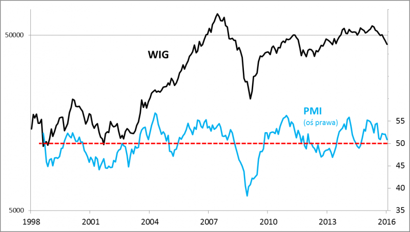 Rys. 3. Wskaźnik PMI znów coraz bliżej granicy 50 pkt.
