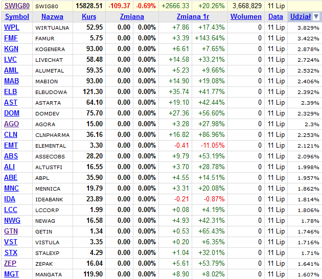 Najsłabszym ogniwem warszawskiego rynku akcji są w ostatnim czasie małe spółki. Indeks sWIG80 stopniowo osuwa się już od kwietnia i w efekcie jest na ponad 4-miesięcznym minimum.